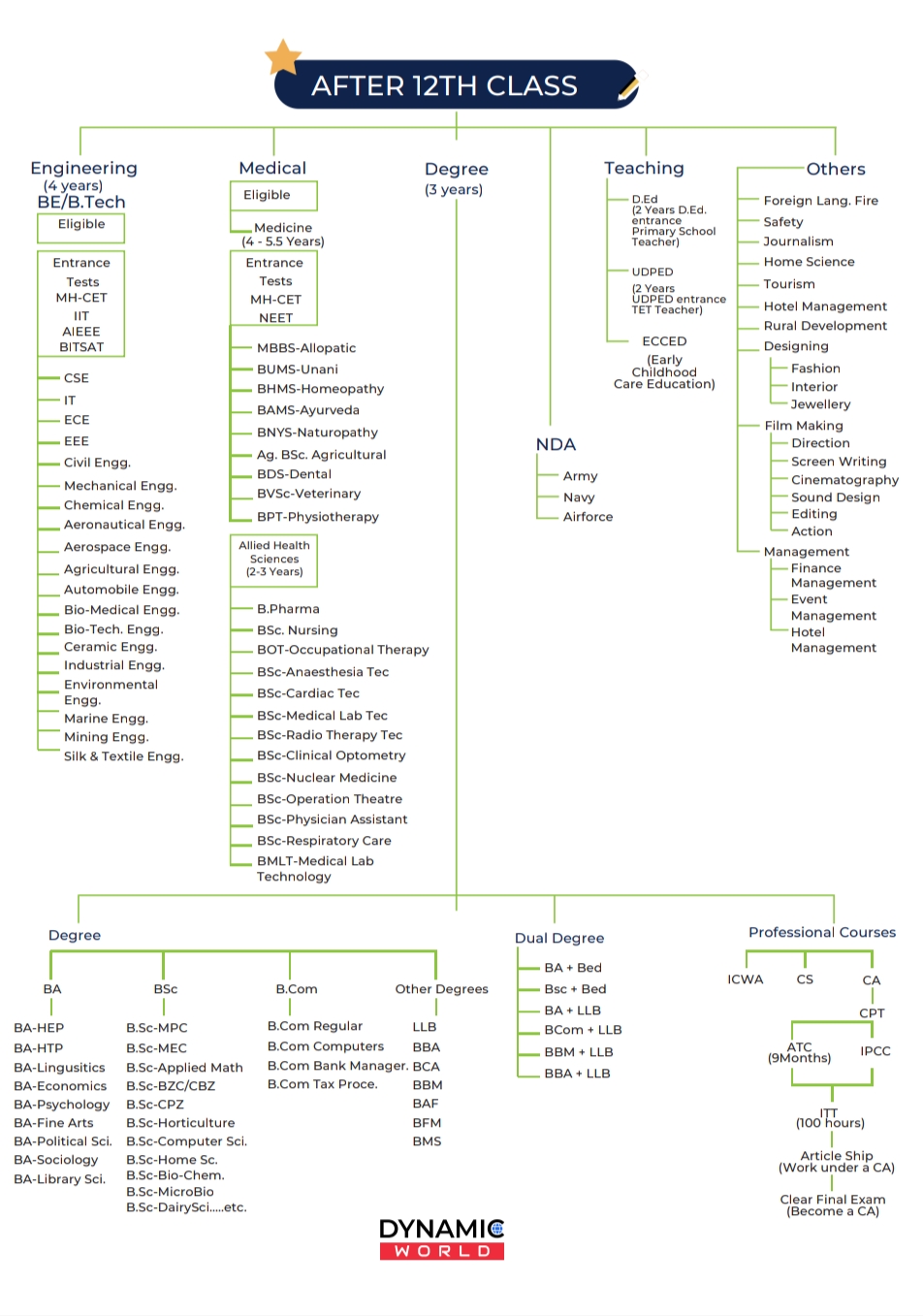 There are hundreds of options available to choose from when it comes to higher education. There are number of questions in the mind of student like which field of specialization should choose or should go for the most popular course or should choose the field my parents suggest and much more. For solving these issues and confusions, Dynamic World Education offers insights into a wide variety of courses and career options. With our guidance and counselling we open the corridor for the world of colleges for the students and help them reach the best and top colleges in MEDICAL, ENGI- NEERING, ARCHITECTURE, AGRICULTURE, PHARMACY, MBA, BBA and many more to the list. Some students are in a dilemma to choose the right courses and colleges from the wide array of options available, Confused, lost, stressed, puzzled, upset, perplexed, unclear all these are words for a student who is unable to select a proper stream for career.